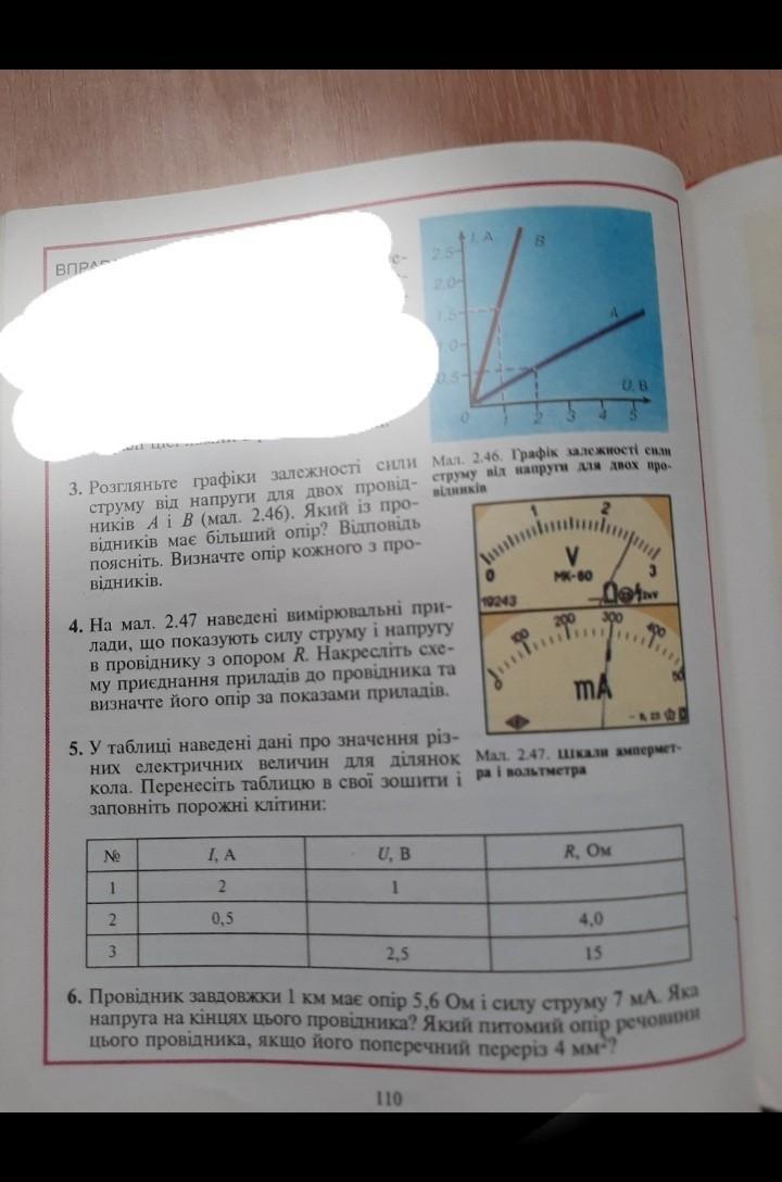 на 5-ый вопрос в строке 1. R=0,5 Ω; в строке 2. U=2В; В строке 3. I=0,16А