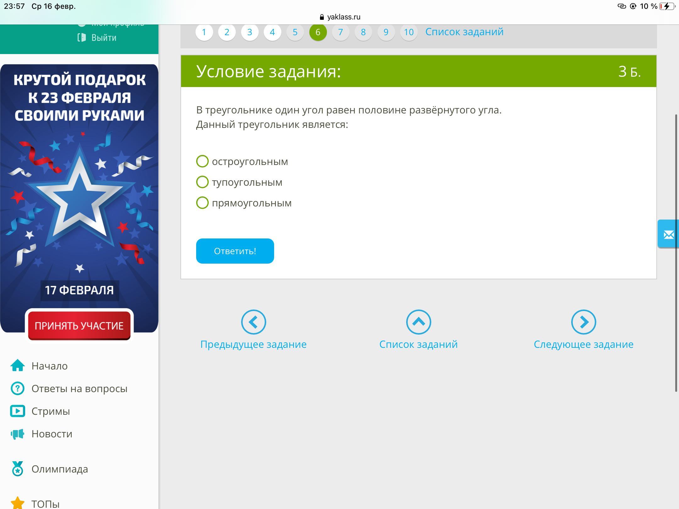 Ответ:прямоугольный