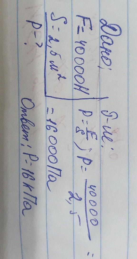гусеничный трактор весом 40.000 н имеет опорную площадь обих гусениц 2,5м .определите давление трактора