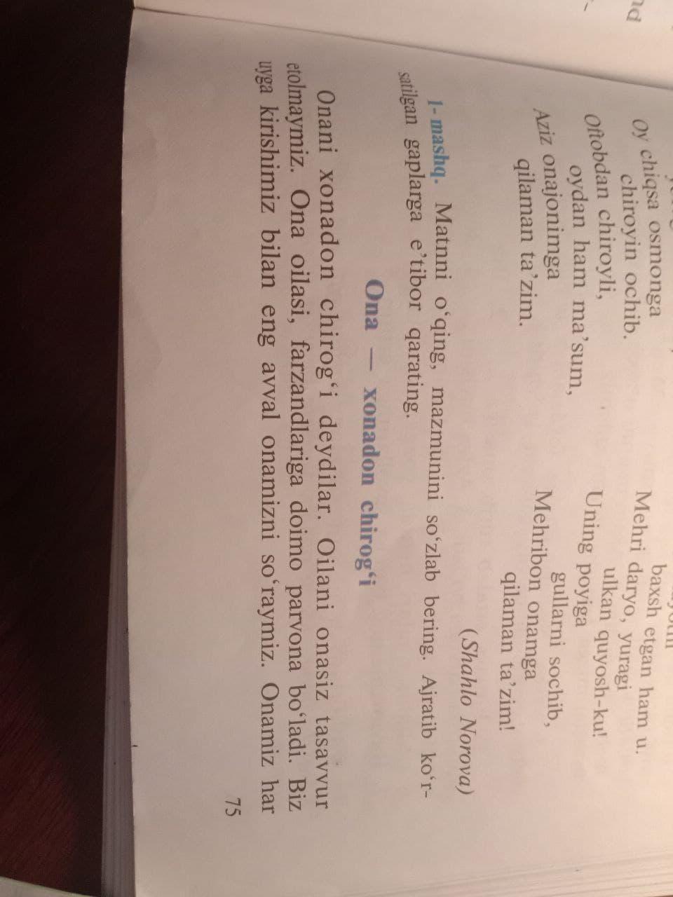 1-mashq. Matnni o'qing, mazmunini so'zlab bering. Ajratib ko'rsatilgan gaplarga e'tibor qarating.