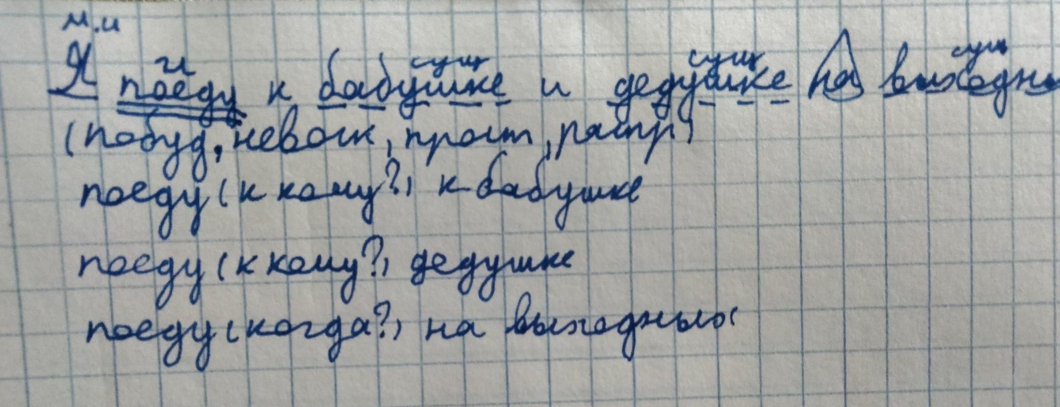 сделайте синтаксический разбор предложения "Я поеду к бабушке и дедушке на выходных"
