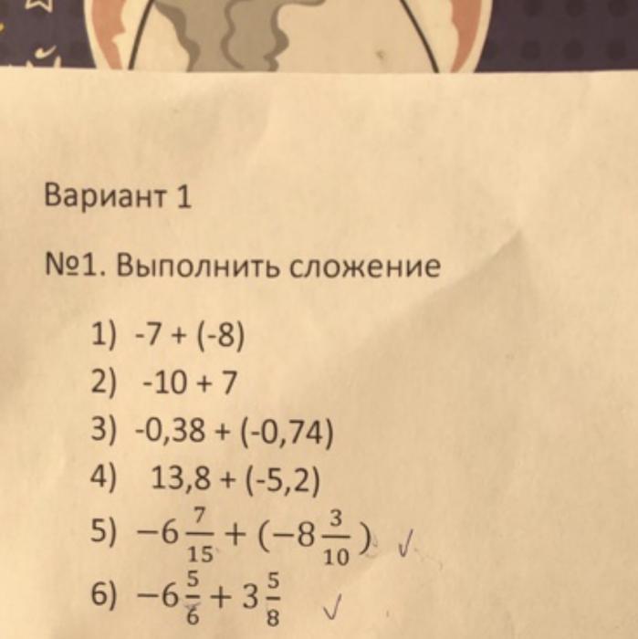 5) -6 7/15 + ( -8 3/10) = -6 7/15 - 8 3/10= - ( 6 7/15+ 8 3/10) = -((6+8)+(7/15+3/10))= -(14+23/30)= -14 23/30