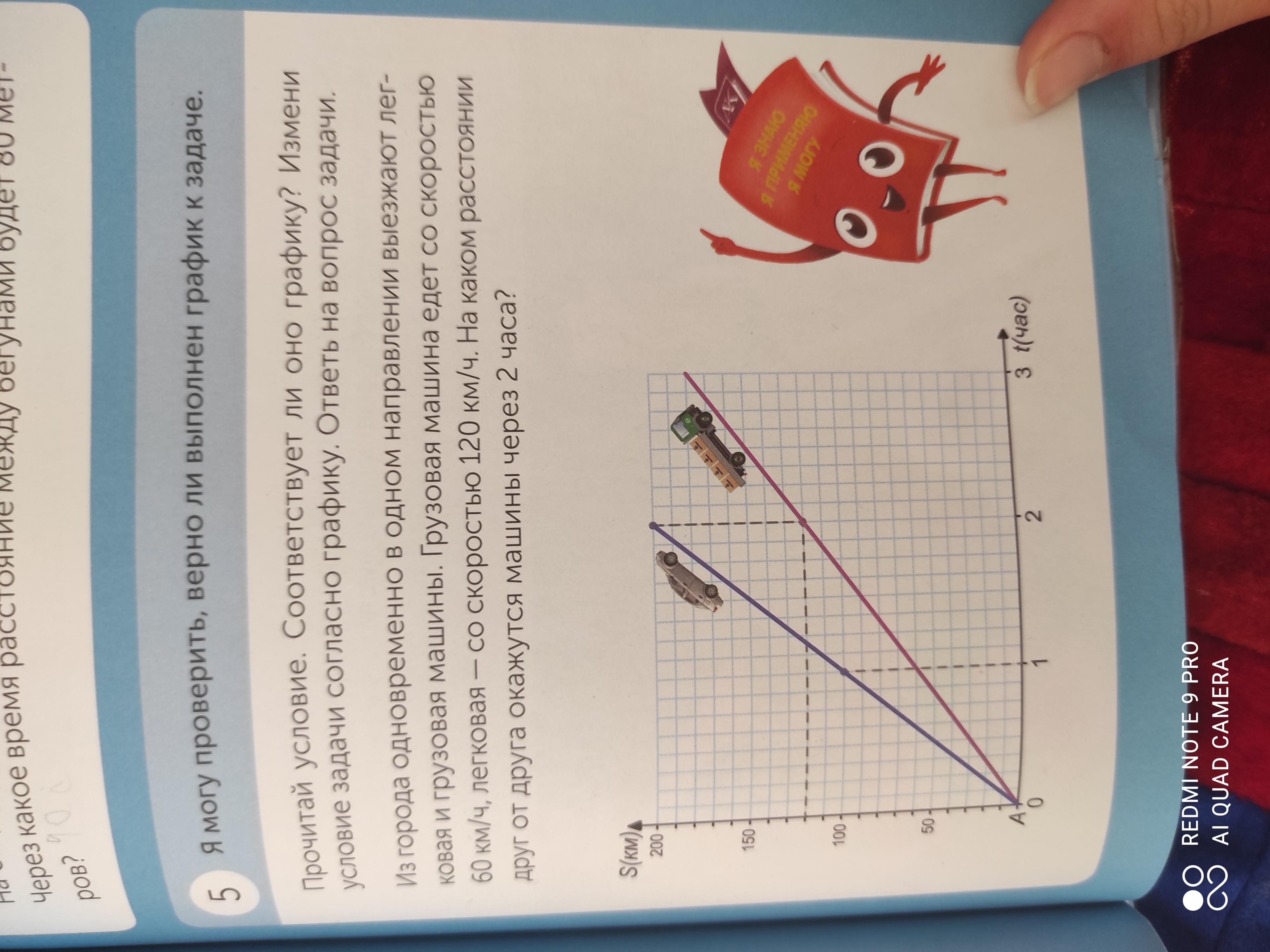 1. Есептің шартында жеңіл мәшине 120 км/сағ жылдамдықпен жүрген. Графикте 100 км/сағ.