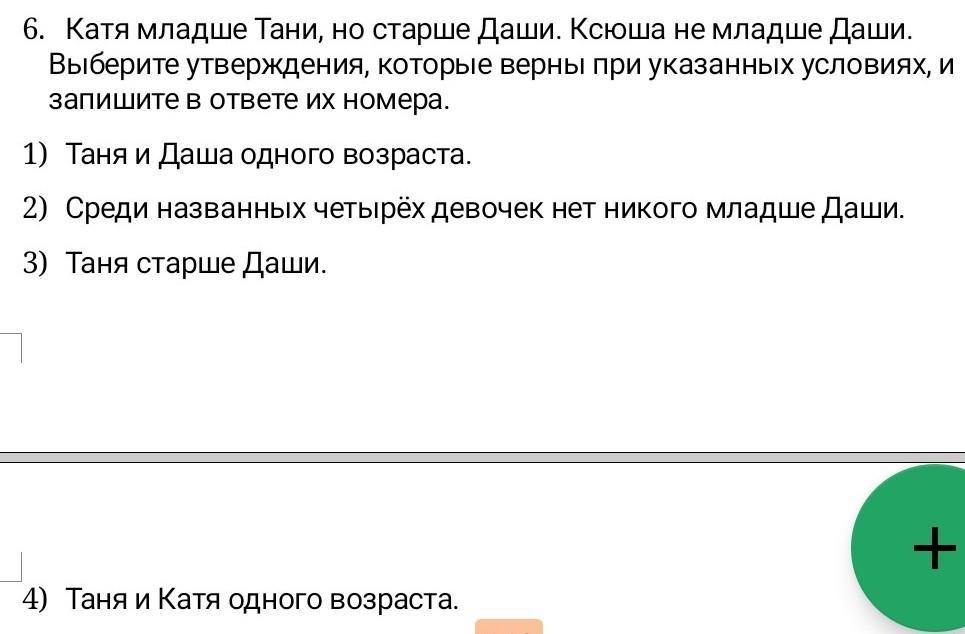 3) Таня старше Даши — верно.