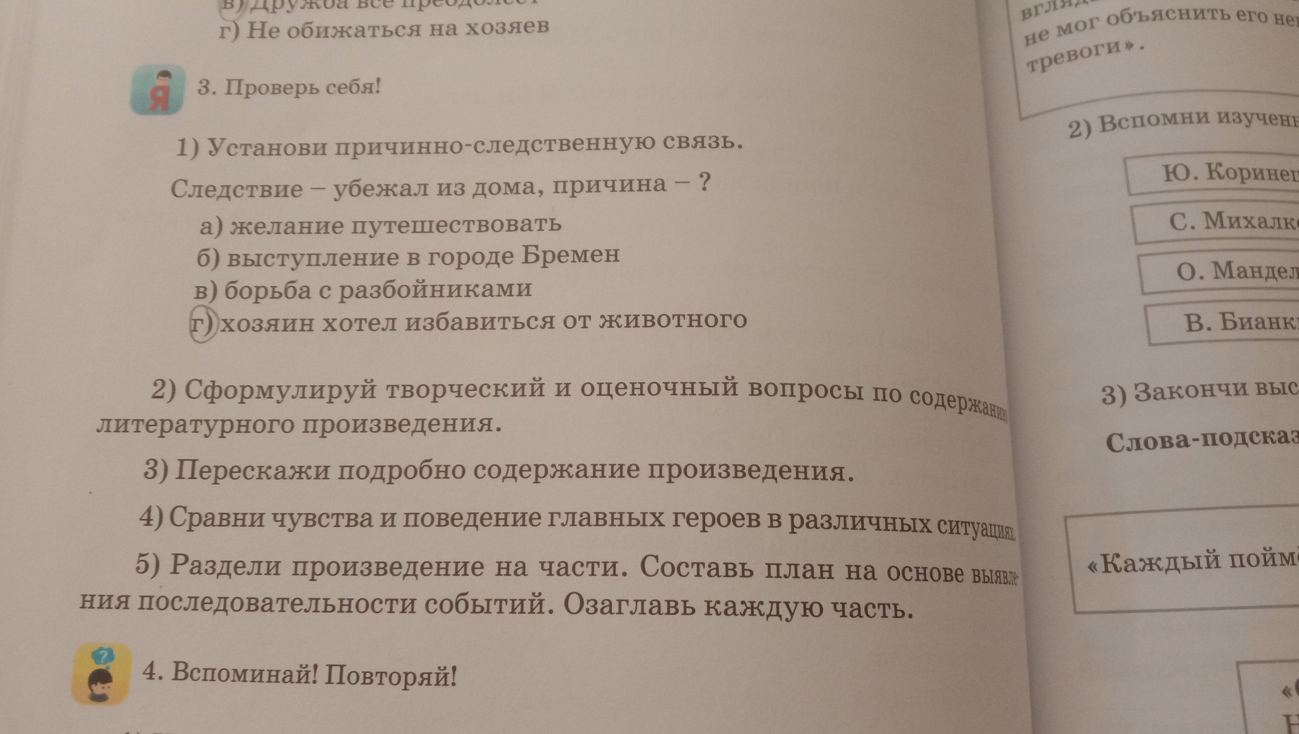 2)Сформулируй творческий и оценочный вопросы по содержанию литературного произведения.