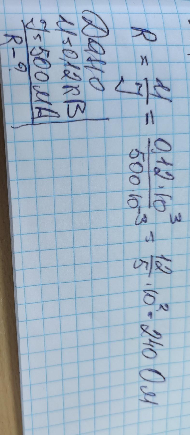 2.Определите сопротивление электрической лампы, сила тока в которой 500 мА, при напряжении 0,12 кВ