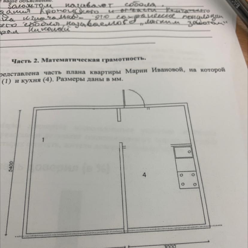 На рисунке представлена часть квартиры Марии Ивановной на которой изображены гостиная и кухня размеры даны в мм