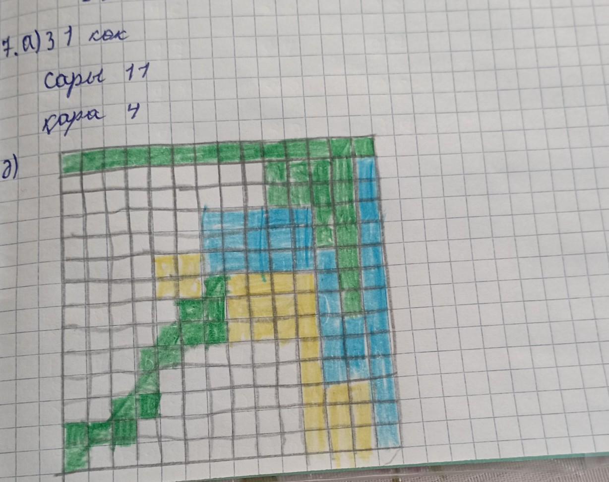ШЫҒАРМАШЫЛЫҚ ЖҰМЫС 7 Тапсырманы орында. а) Суретке қара. Әр түстегі торкөздер санын пайызбен жаз. ә) Шаршыны 10 да 10 торкөз өлшемімен бей- неле. 3 түстен тұратын өз өрнегіңді сал. Жол- дасыңа тапсырмаңды ұсын. 2 СЕЦ 2CDTTгі сі