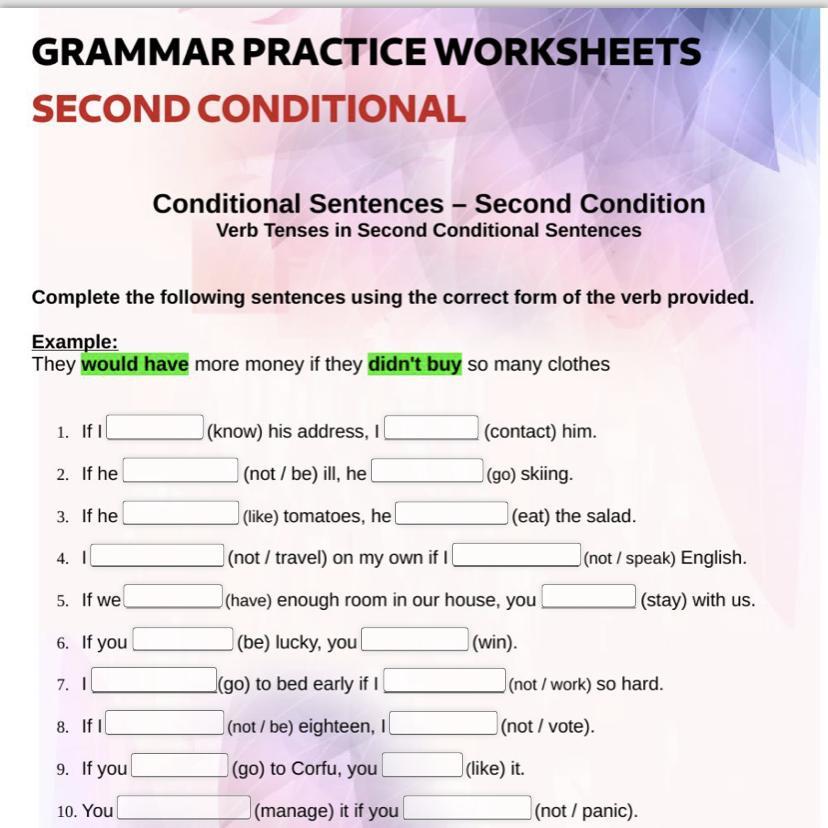 1. would know, contacted 2. would not be, went 3. would like, ate 4. would not travel, did not speak 5. would have, stayed 6. would be, won 7. would go, did not work 8.would not be, did not vote 9. would not go, liked 10. would manage, did not panic