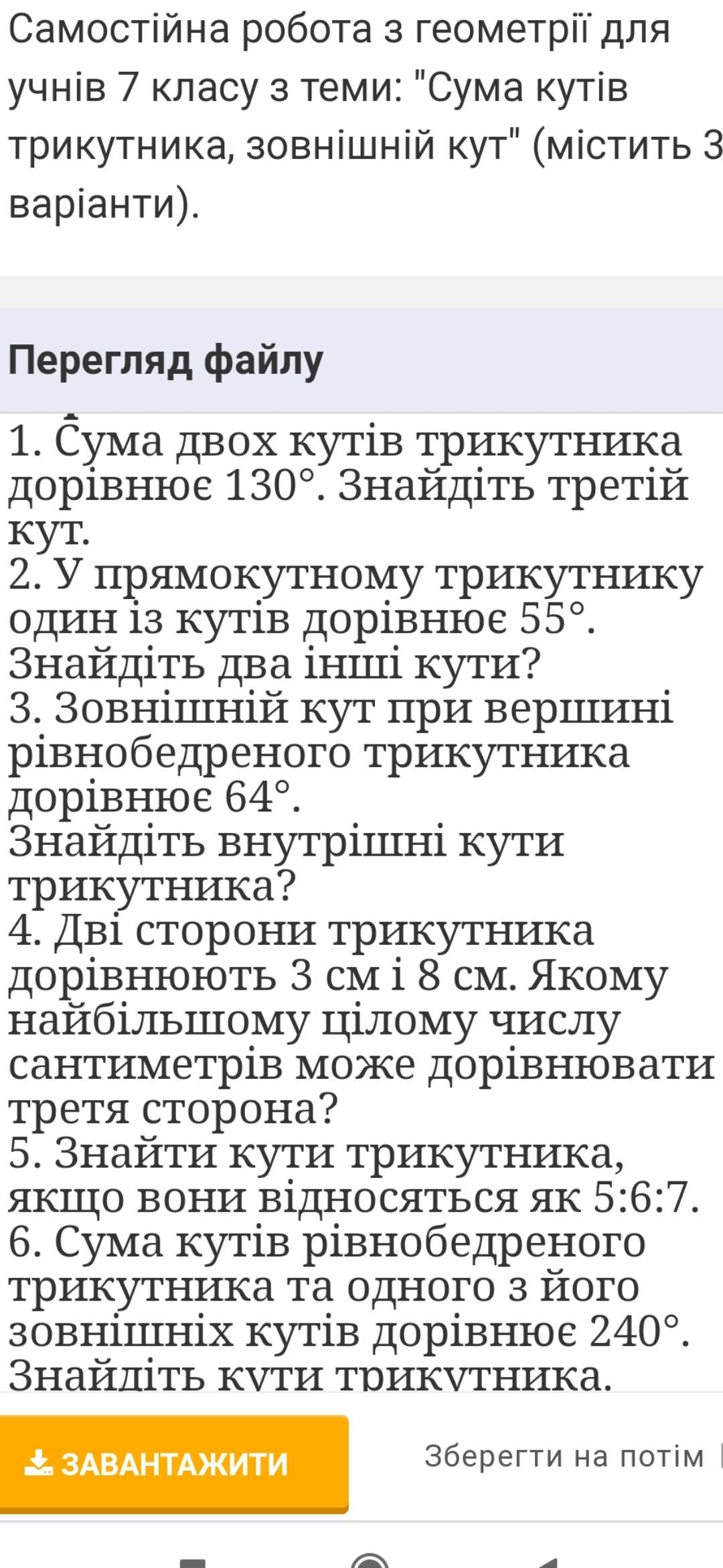 6 Ответ: СУМА КУТІВ ТРИКУТНИКА 180° ЗНАЧИТ ЗОВНІШНІЙ КУТ =240-180=60°