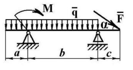 ∑Ma=0; Rв*b-F*(b+c)*sinα-q*b*b/2-M+qaa/2=0