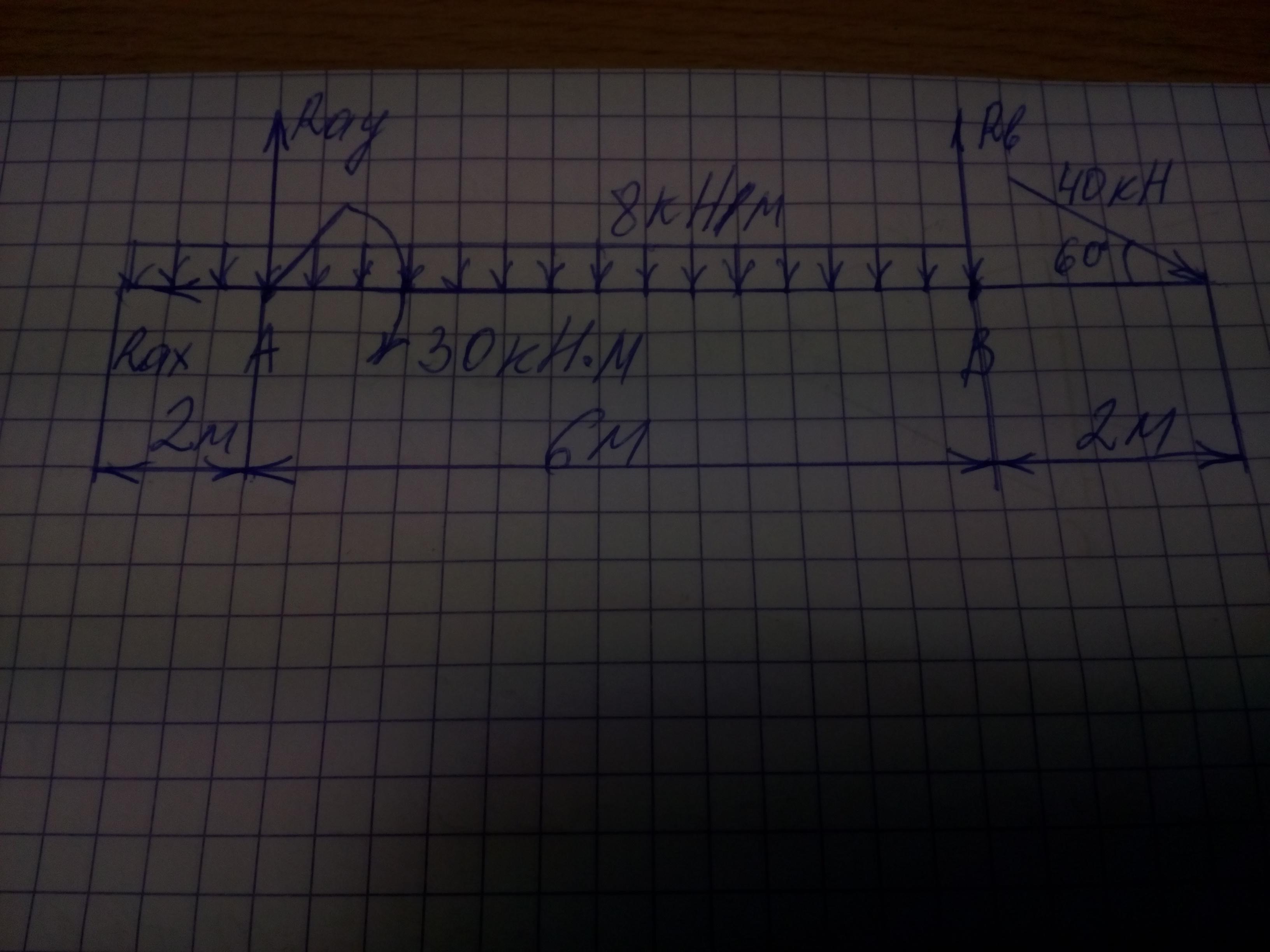 Rв*6-40*8*0,87-8*6²/2-30+8*2²/2=0