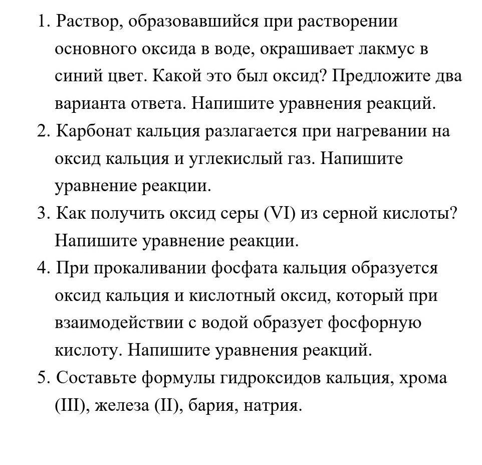 1. Раствор, образовавшийся при растворении основного оксида в воде, окрашивает лакмус в синий цвет. Какой это был оксид? Предложите два варианта ответа. Напишите уравнения реакций.