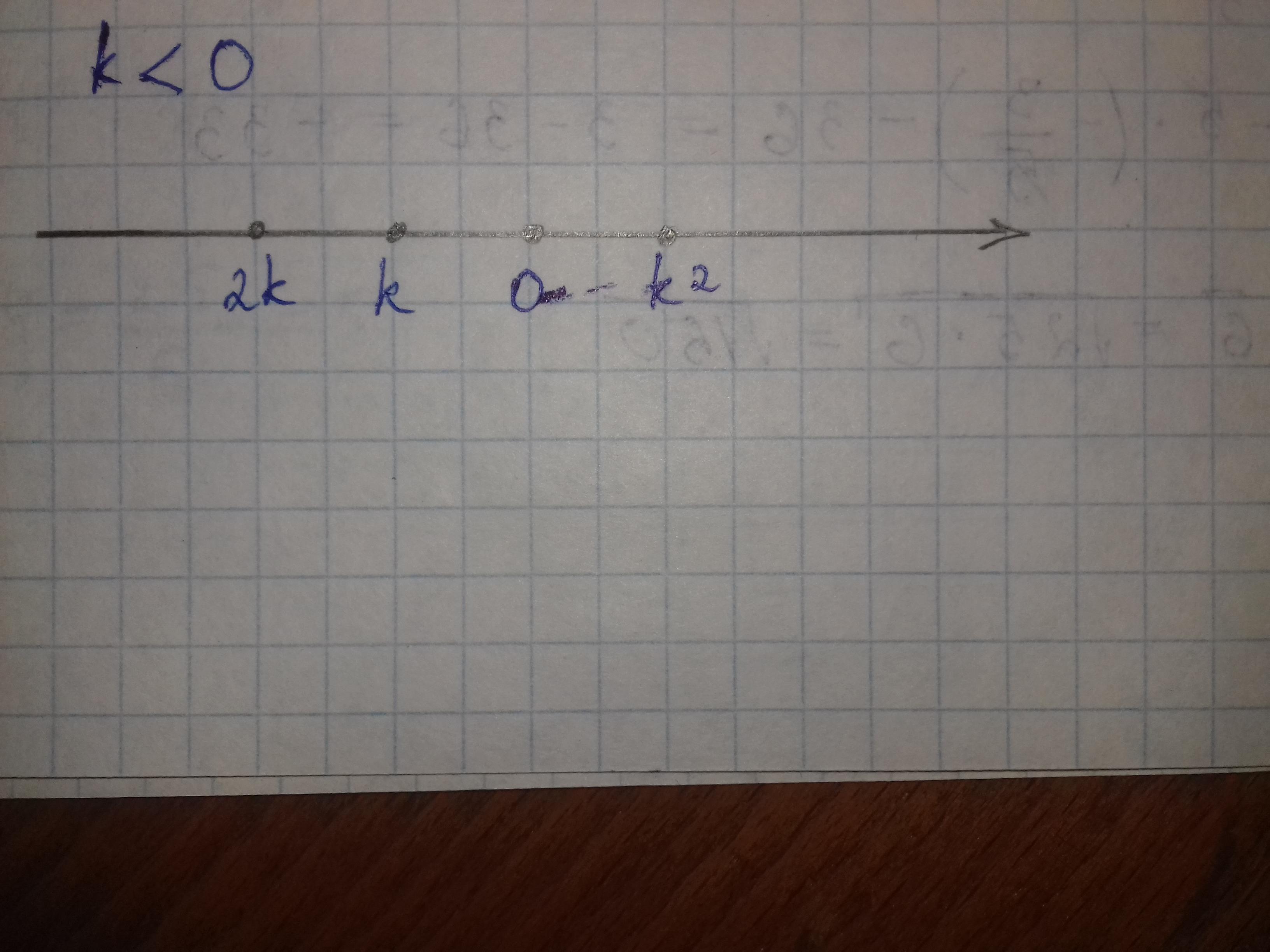 Известно, что число k отрицательное. На каком из рисунков точки с координатами 0, k, 2k, k² находятся на координатой прямой в правильном порядке?