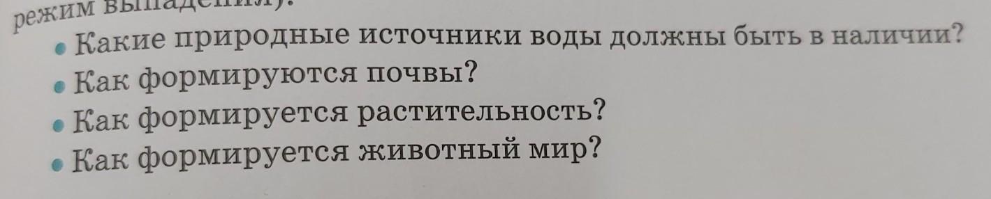 Какие природные источники воды должны быть в наличии о Как формируются почвы? Как формируется растительность? • Как формируется животный мир?