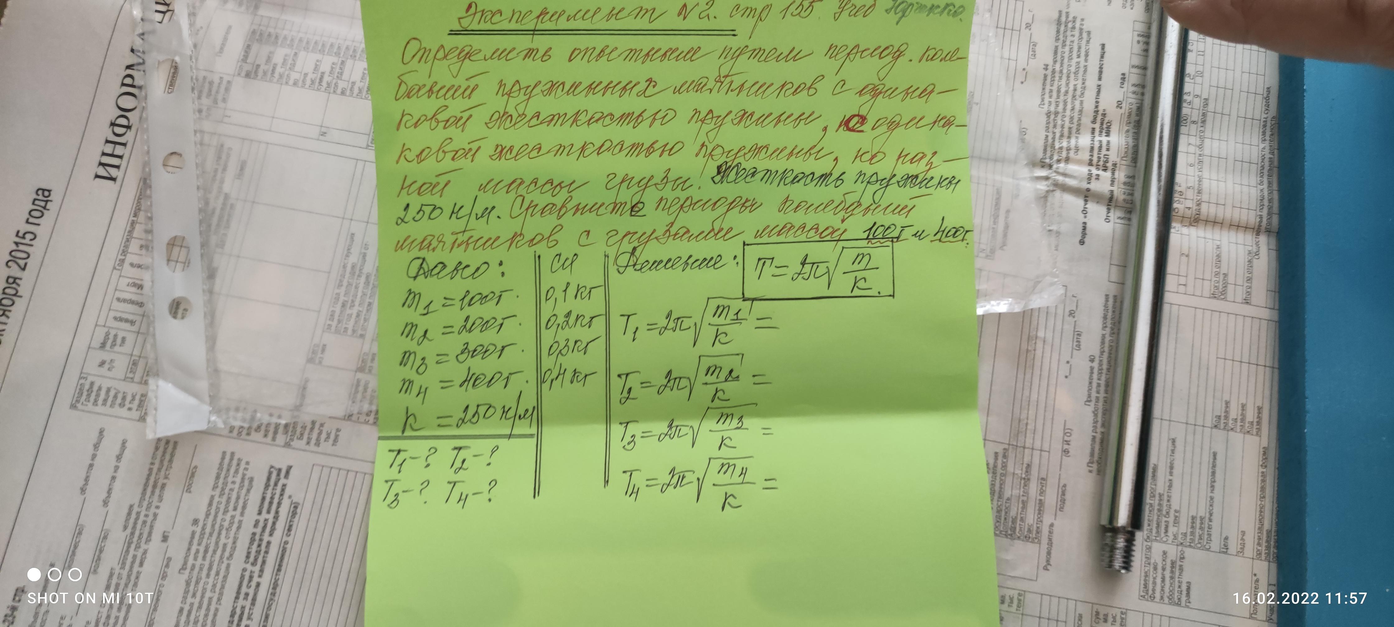 m1=0.1 кг m2=0.2 кг m3=0.3 кг m4=0.4 кг k=250 Н/м T1=? T2=? T3=? T4=?