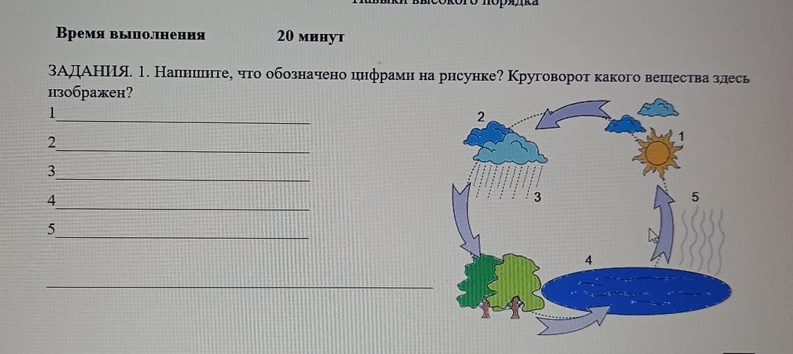 ЗАДАНІЯ. 1. Напишите, что обозначено цифрами на рисунке? Круговорот Какого вещества здесь изображен? 1 2 2 3 5 s