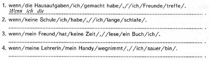 1) Ich treffe freunde, wenn ich die Hausaufgaben gemacht habe.