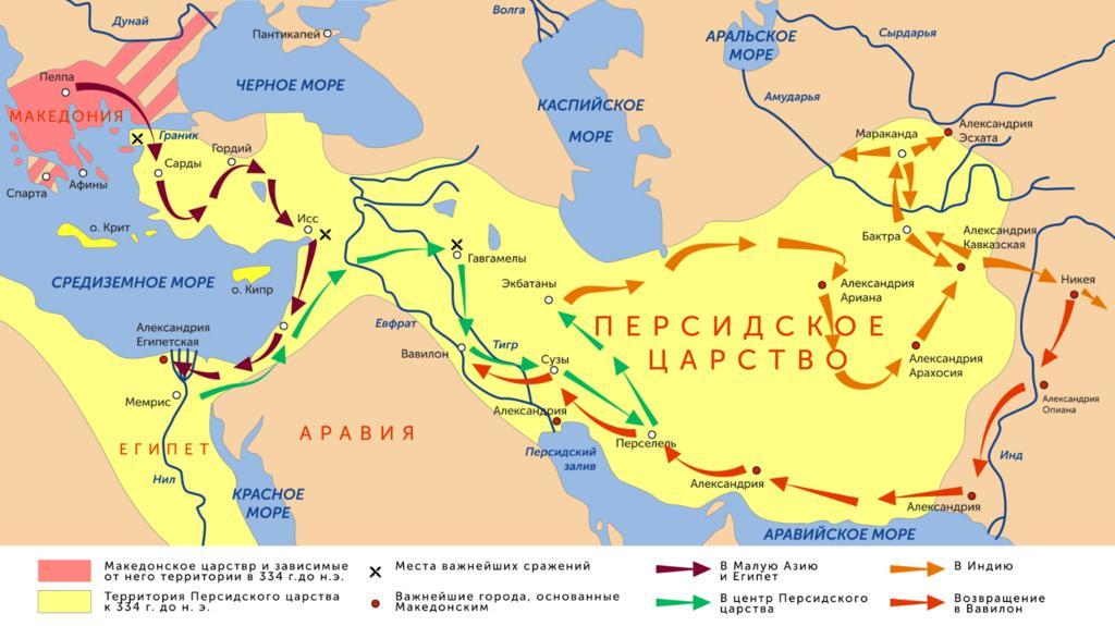 Рассмотрите карту и определите, какие древние государства вошли в состав Македонской империи.