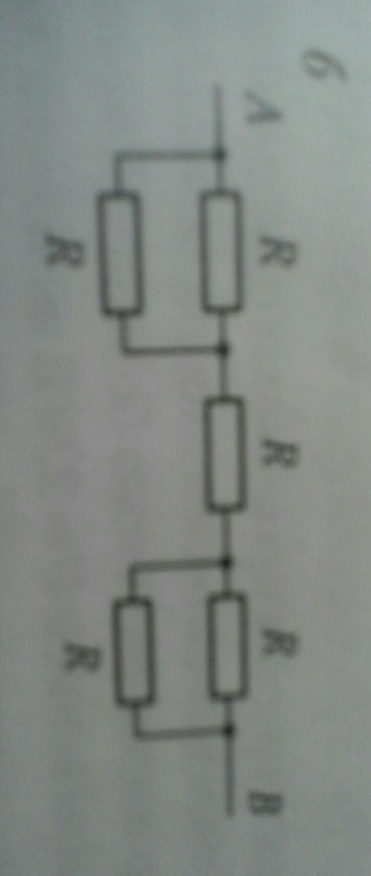 Определите общее сопротивление участка AB. Сопротивление резисторов одинаковы и равны R = 3 Ом