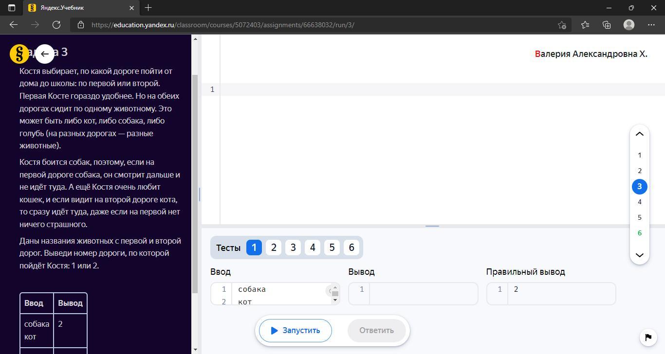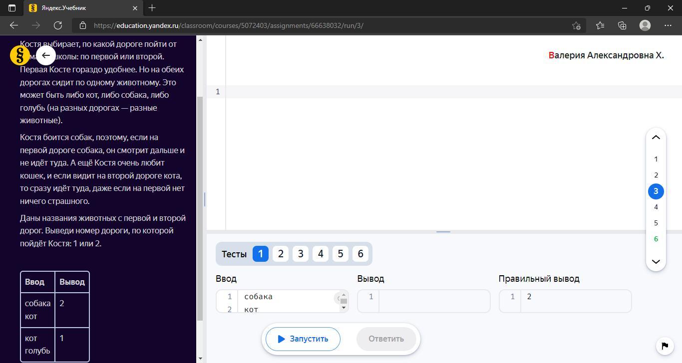 print('Костя идет по первой дороге. Он видит {}! Куда ему идти? [1/2]: '.format(animaLlist[random]))