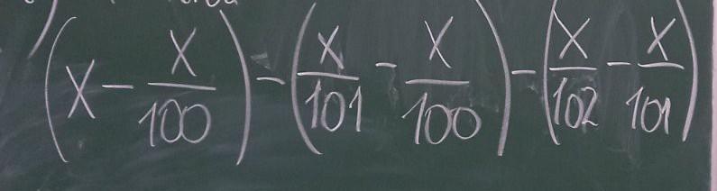 = x - x/100 - x/101 + x/100 - x/102 + x/101 = x - x/102