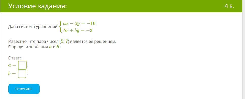 5х + by = -3 x = 5; y = 7;
