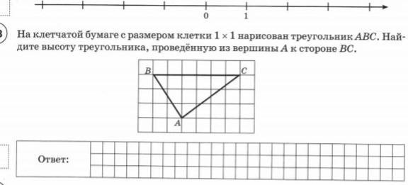 Считаем количество клеток от точки А до стороны ВС, их 3. Значит, высота равна 3