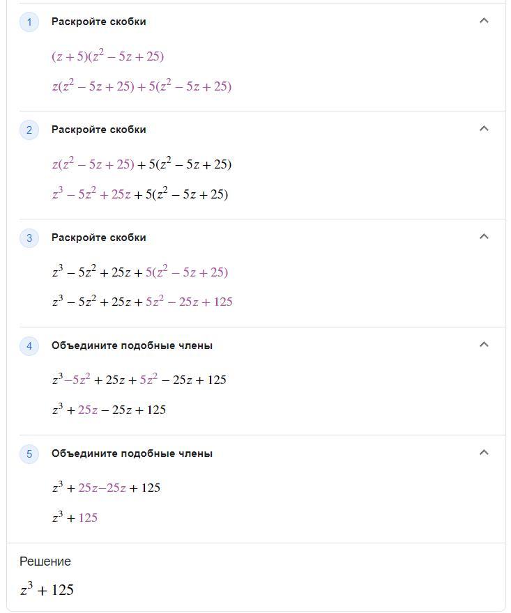 1)z³-5z²+25z+5z²-25z+125=z³+125