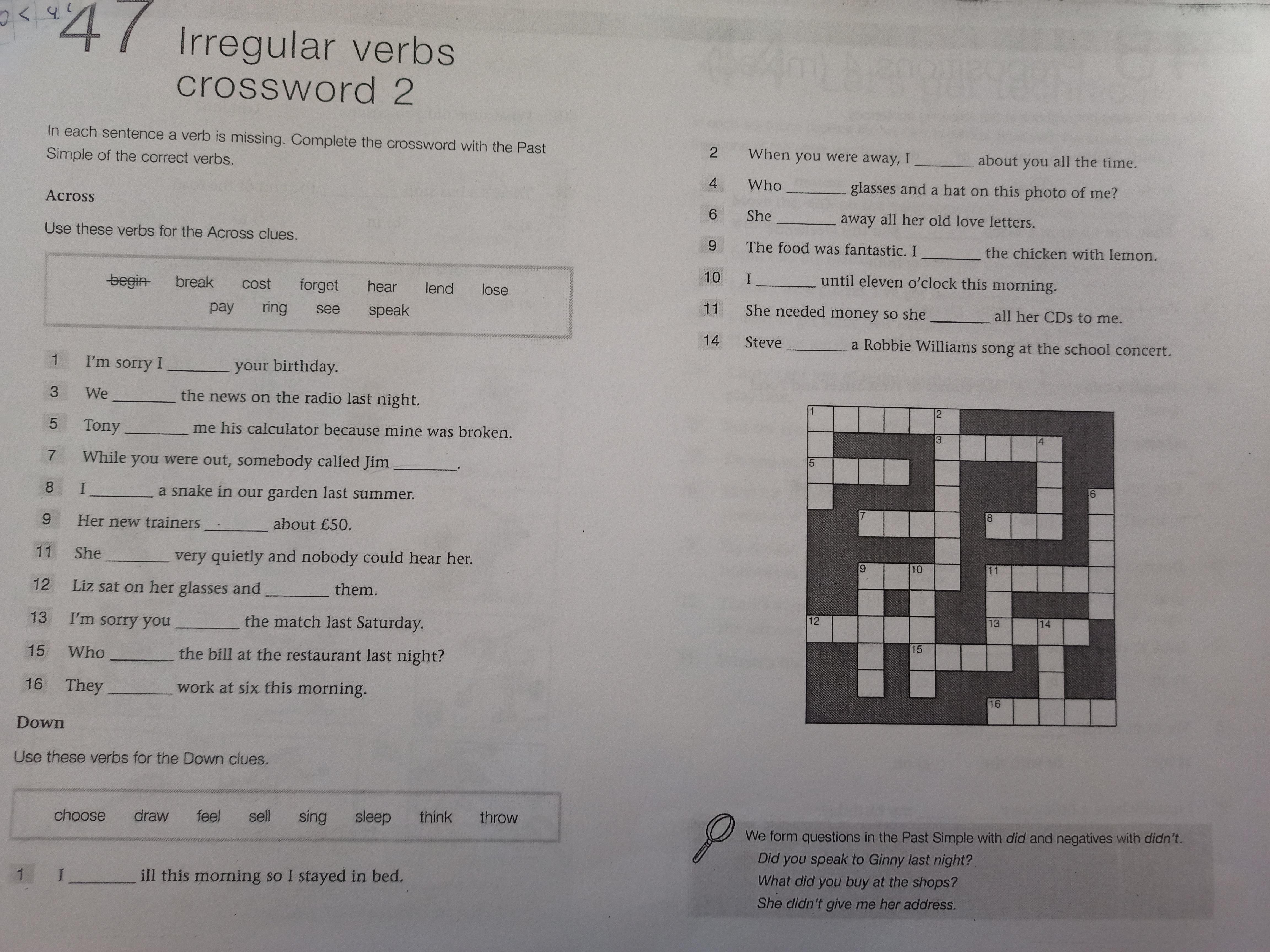 Помогите пожалуйста разгадать красворд по английски во времени Past Simple написать 16 предложений даю 60 баллов. Задание на фото.