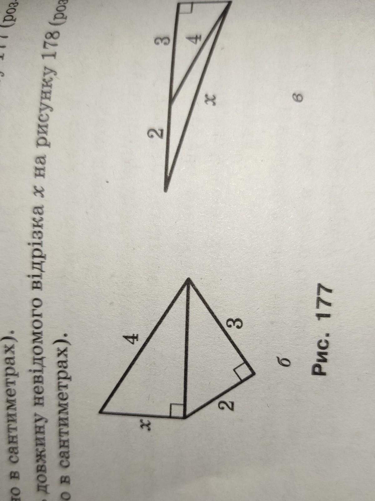 Знайдіть довжину невідомого відрізка х на рисунку 177 (розміри доно в сантиметрах)