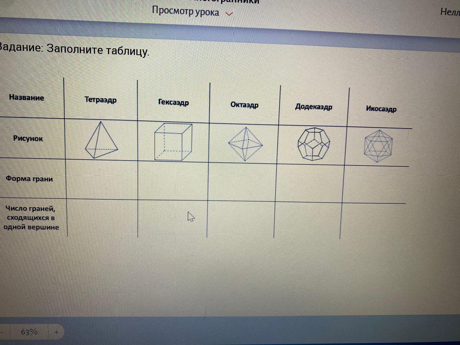Икосаэдр-форма грани-правильный треугольник,число граней-по 5