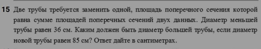 S = 1 017,36 + 1 808,64 = 2 826 см² - сумма площадей двух труб = площади поперечного сечения новой трубы
