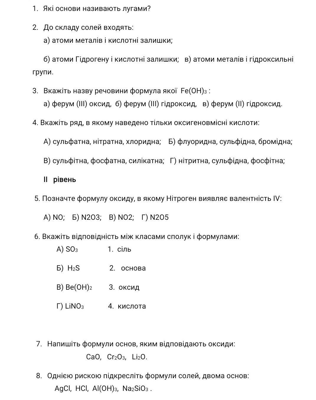 7.CaOH, Cr2(OH)3, Li2OH