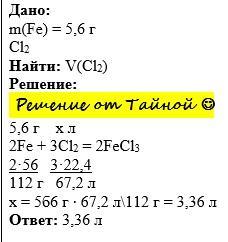 5,6 г заліза взаємодіє з хлором об‘ємом.