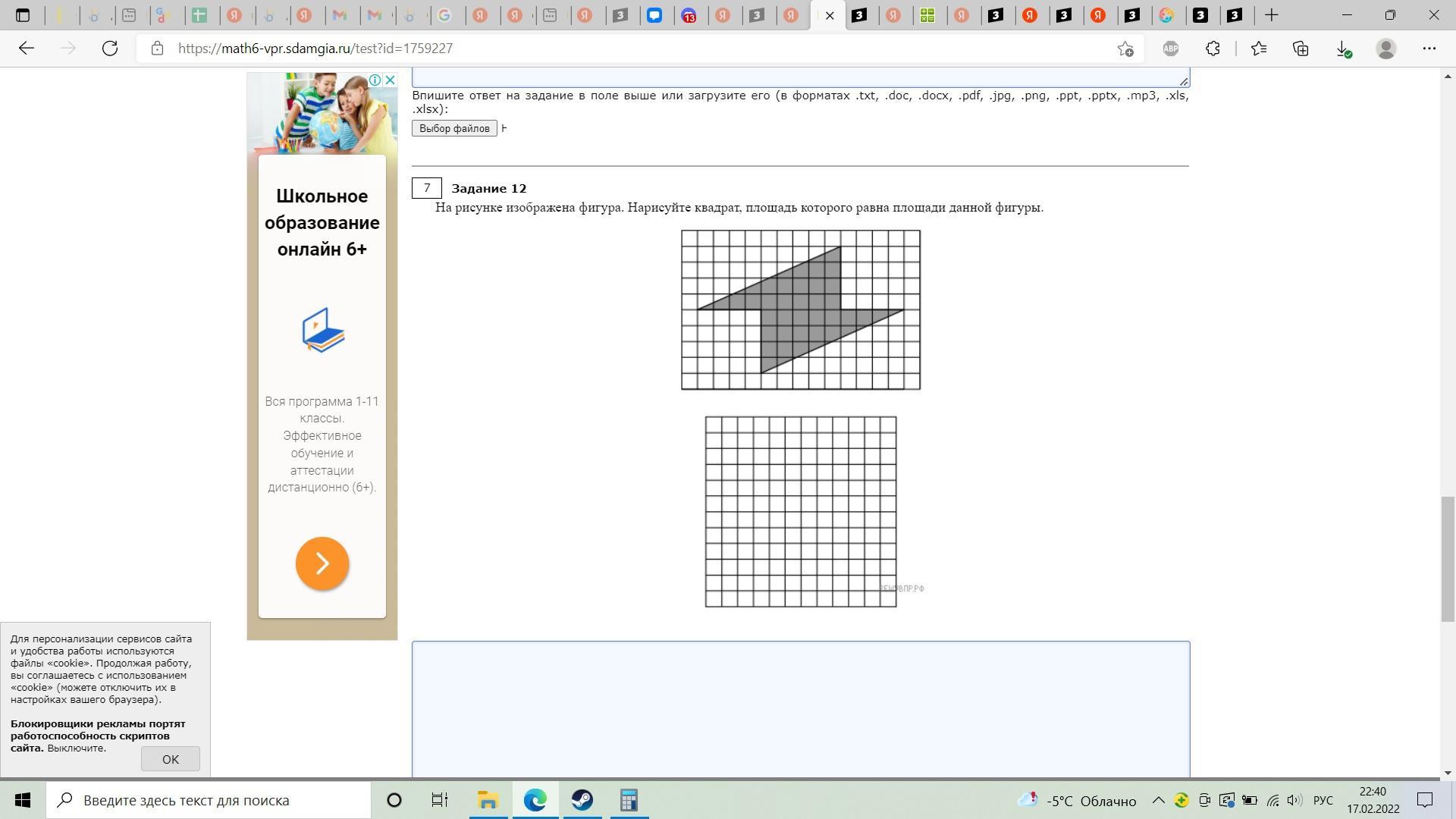 На рисунке изображена фигура. Нарисуйте квадрат, площадь которого равна площади данной фигуры.