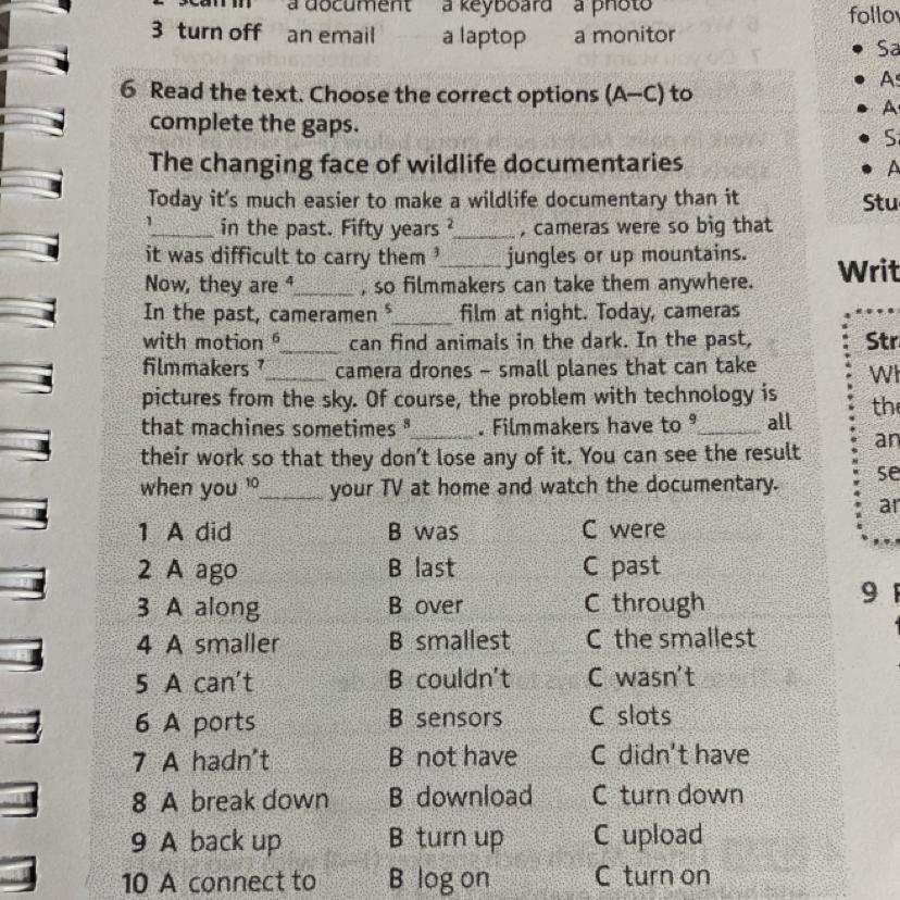 6 Read the text. Choose the correct options (A-C) to