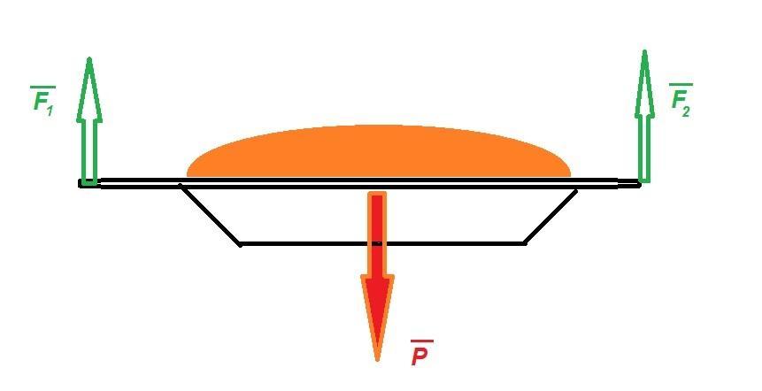 Ваня и Алиса несут носилки с песком массой m=35кг Ваня прикладывал силу F1=160H Определите, какую силу F2 прикладывала Алиса (g=10H/кг)