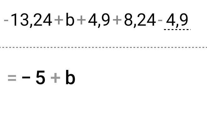-13,24+б+4,9+8,24+(-4,9)=-13,24+б+4,9+8,24-4,9= -13,24+8,24+б=-5+б= -5+3 4/9=-1 5/9