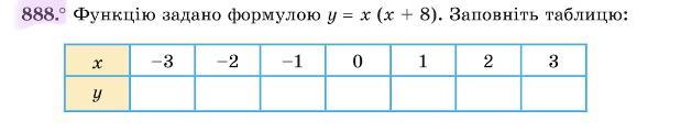 Функцію задано формолою y=x(x+8).Заповніть таблицю
