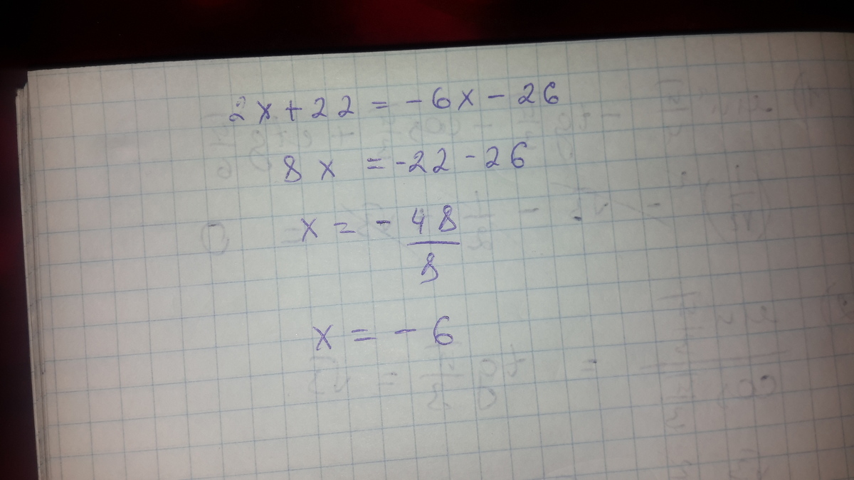 2х+22= -6х - 26