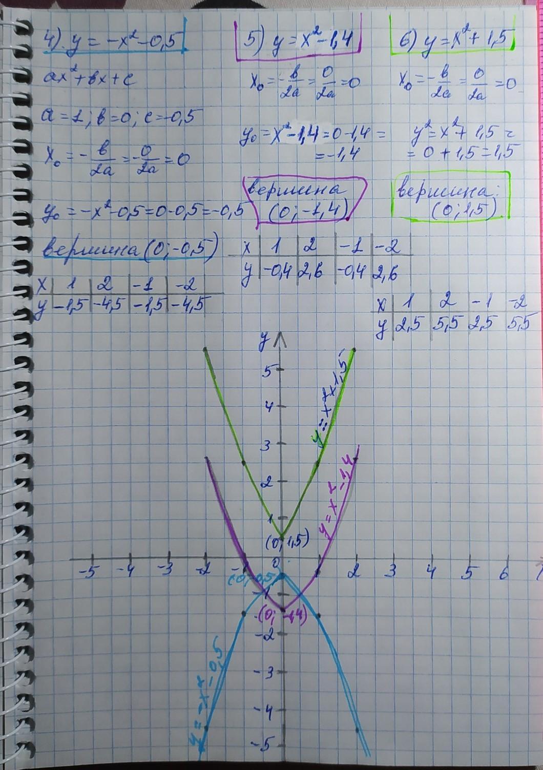 Запишите координаты вершин параболы, укажите направление ее ветвей и постройте графики функций.