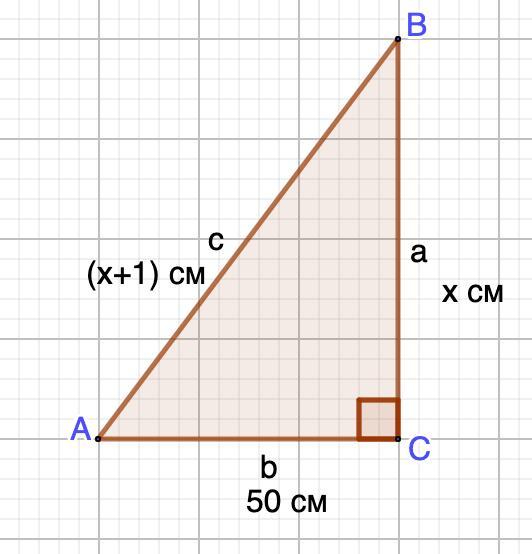 Найти значение синуса и косинуса наименьшего угла прямоугольного треугольника, если: а) с – а = 1 см, b = 50 см;