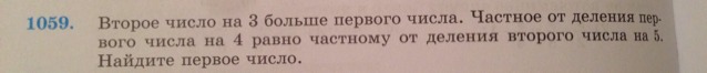 пусть первое число х, тогда второе х+3. Частное от деления первого числа - х:4,