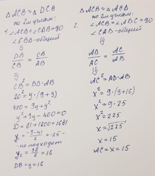 AB=25 - гипотенуза, AC=15 и CB=20 - Катеты