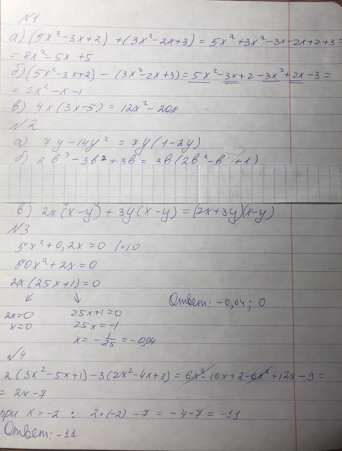 а) (5x²-3x+2)+(3x²-2x+3) = 5x²-3x+2+3x²-2x+3 = 8x²-5x+5