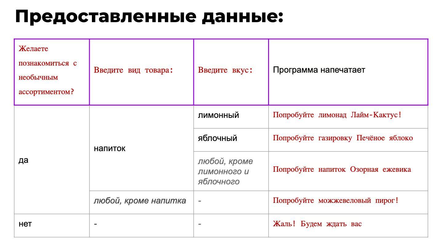 ........taste = input ('Введите вкус:')