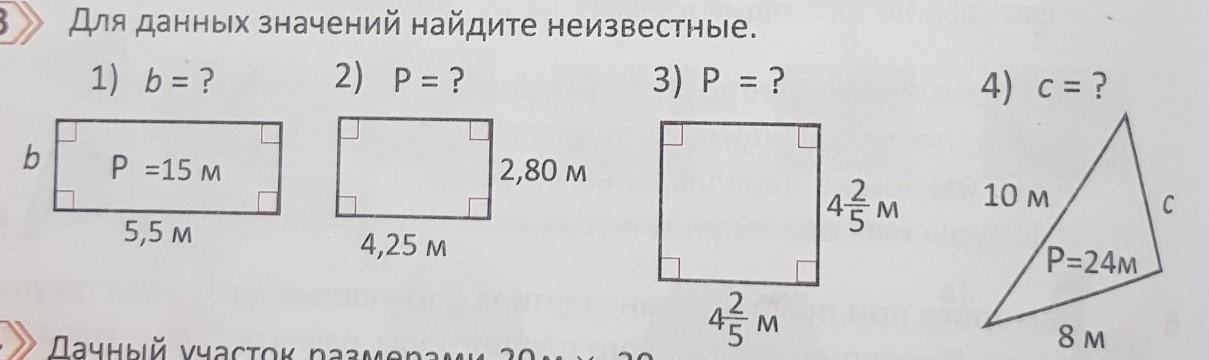1) P = 5,5 * 2 + b * 2 = 15 => 2b = 4 => b = 2