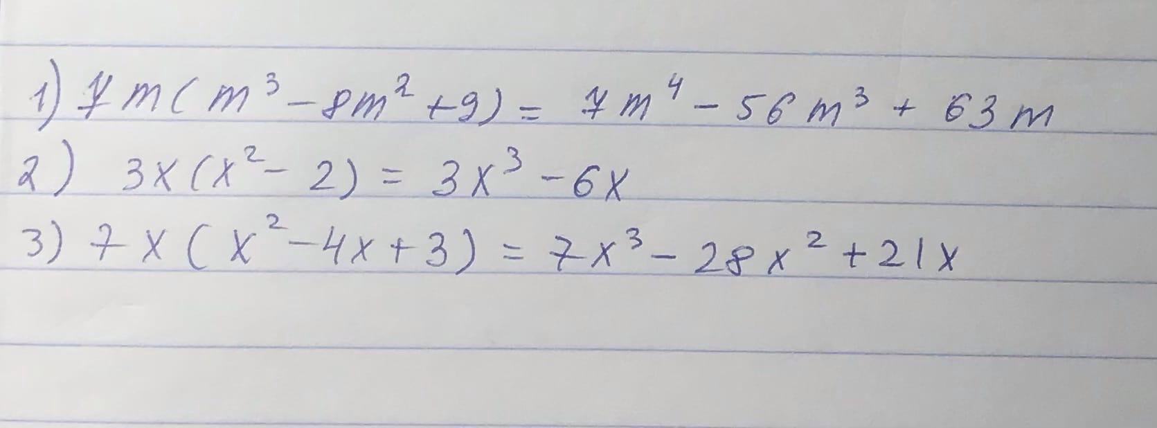 1) 7m(m³-8m²+9)=7m⁴-56m³+63m