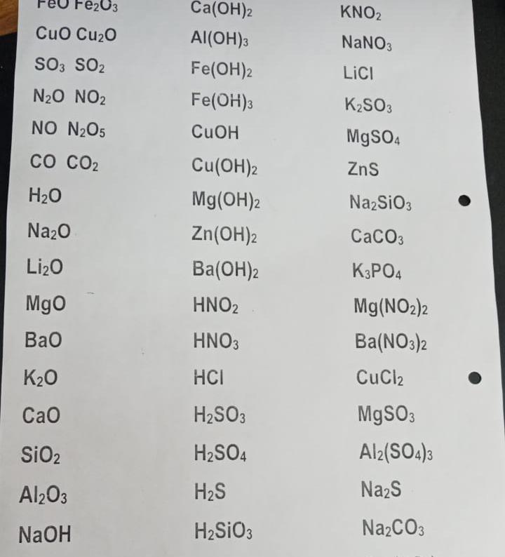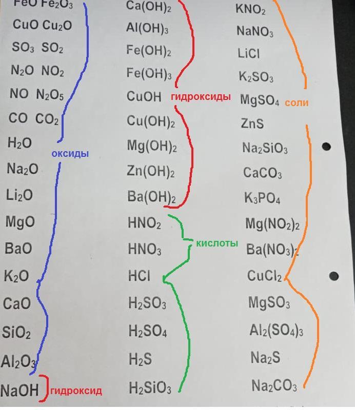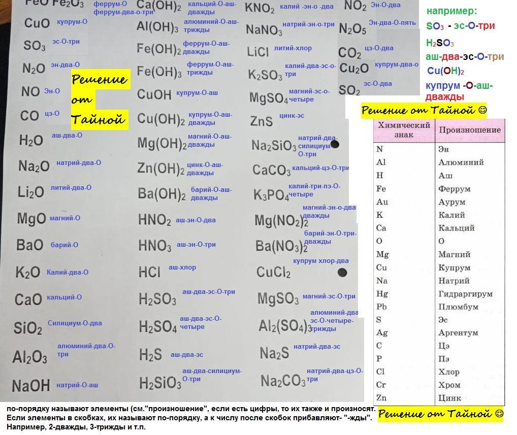 Мне нужно узнать как читаются оксиды и гидрооксиды, какие тут кислоты и соли.